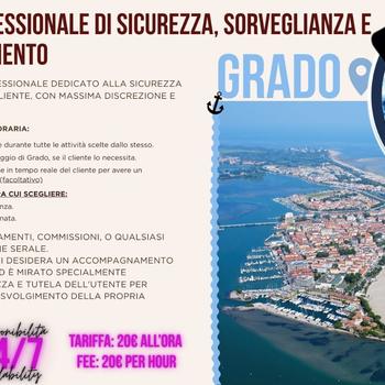 Servizio di Sorveglianza e Accompagnamento – 20€/h Offro un servizio professionale dedicato alla sicurezza e alla tranquillità del cliente, con massima discrezione e affidabilità. Cosa è incluso nella tariffa oraria: - Sorveglianza e sicurezza del cliente durante tutte le attività concordate. - Trasporto mirato entro 15 km nel raggio di Grado, con mezzo privato. - Due modalità di sicurezza tra cui scegliere: - Supervisione e controllo a distanza - Supervisione e controllo ravvicinata Servizio ideale per spostamenti, commissioni, eventi, situazioni serali o per chi desidera un accompagnamento sicuro e professionale.