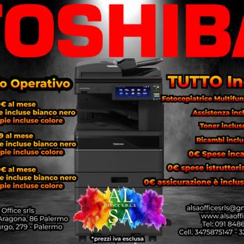 Alsa Office: Best Company in Attrezzature Ufficio a Palermo Benvenuti su Alsa Office, l’azienda top leader in tutta la Sicilia nella vendita e nel noleggio di attrezzature per ufficio. Se sei alla ricerca di soluzioni all’avanguardia per il tuo ufficio; come fotocopiatrici, stampanti multifunzione a colori e laser, Toshiba, mobili per ufficio e molto altro, sei nel posto giusto. Alsa Office è il partner di fiducia per aziende e professionisti in tutta la Sicilia, compreso Palermo Trapani Catania Messina e Agrigento Caltanissetta. Perché scegliere Alsa Office? Quando si tratta di attrezzature per ufficio, Alsa Office è il punto di riferimento in Sicilia. Non solo offriamo una vasta gamma di prodotti, ma ci impegniamo anche a fornire un servizio clienti di altissima qualità. Con anni di esperienza nel settore, conosciamo le esigenze specifiche di chi lavora è siamo pronti a soddisfarle con soluzioni personalizzate. Le nostre soluzioni di stampa e copia: Se stai cercando fotocopiatrici e stampanti multifunzione a colori o laser, Alsa Office ha la soluzione perfetta per te. Le nostre macchine sono selezionate tra i migliori marchi sul mercato, come TOSHIBA garantendo performance elevate e affidabilità nel tempo. Oltre alla vendita, offriamo anche il noleggio, una soluzione ideale per chi desidera ridurre i costi iniziali e mantenere sempre aggiornate le attrezzature. Alsa Office a Palermo Trapani Catania Messina e Agrigento e in tutta la Sicilia: Siamo orgogliosi di servire clienti non solo a Palermo, Trapani Catania Messina e Agrigento, in tutta la Sicilia.