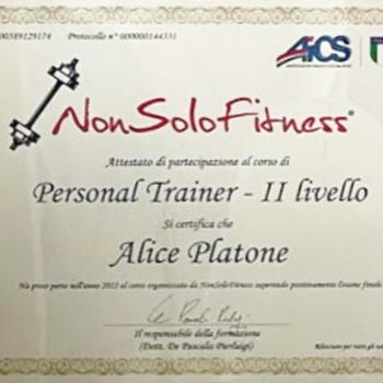 Ciao sono Alice da anni ho come passione la sala pesi che col tempo è diventata anche un lavoro. Man mano la voglia di mettermi al primo posto nella vita ha fatto si che introducessi nelle mie giornate del tempo da dedicare solo a me stessa. Ho conseguito il diploma di personal trainer certificato da CONI e AICS potendo così entrare nel mondo del fitness, lavorando in varie palestre come personal trainer. Mi piace far si che, le persone che seguo, ottengano risultati evidenti e che riescano ad introdurre nella propria vita un' alimentazione sana e gustosa allo stesso tempo non perdendo il piacere per il buon cibo.