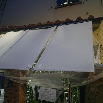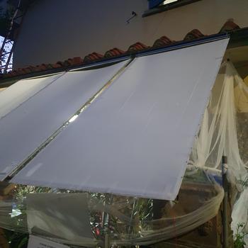 pannelli frangi-sole e frangi-pioggia leggerissimi, solo 3 chilogrammi, realizzati con profili in alluminio, dotati di ganci in inox 304, durevoli nel tempo e alle intemperie, ideali per terrazzi, e strutture copertura serre per ortaggi, colture idroponiche, pensiline, posto auto. Montabili e smontabili in pochissimi minuti. Non hanno Nessun impatto paesaggistico e ambientale. SI tolgono immediatamente e non c'è proprio nulla!