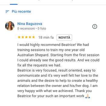 Mi occupo di consulenze comportamentali, per migliorare il rapporto con il cane e risolvere problematiche gestionali. Il mio approccio unisce l’etologia e la comunicazione alle tecniche di addestramento. Non mi limito a osservare il problema, ma analizzo tutto il contorno (gestione, benessere del cane), in modo da trovare una soluzione duratura. Lavoro a domicilio oppure nella mia zona (Gallaratese, MI) e organizzo anche full-immersion per chi viene da lontano. Nelle foto trovi anche brevi racconti di binomi che ho seguito e i risultati raggiunti! La mia formazione: sono Dott.ssa in Allevamento e benessere animale e Pet Sitter certificata. Lavoro con i cani da anni, tra volontariato in canile, dog sitting e operatrice in asili per cani. Continuo a formarmi attraverso stage e tirocini cinofili. Profilo Instagram: BeaeLiam