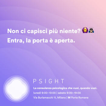Sono Psicologa iscritta all'albo. Sono specializzata in Psicologia delle Organizzazioni del Marketing, ho quindi esperienza nell'ambito aziendale e come consulente di carriera e coach. Sono fondatrice di Psight, il primo centro di psicologia in Italia in forma ambulatoriale, con accesso libero, senza prenotazione. La terapia che svolgo è chiamata a seduta singola, perchè spesso basta un solo incontro per arivare a comprendere come attivarsi per il cambiamento che si desidera. il mio obiettivo è far si che il cliente risolva quanto prima il suo problema, per etica professionale. Ricevo a Milano da Psight in via Burlamacchi 11 (M Portaromana) anche senza prenotazione ed in altre zone su prenotazione.