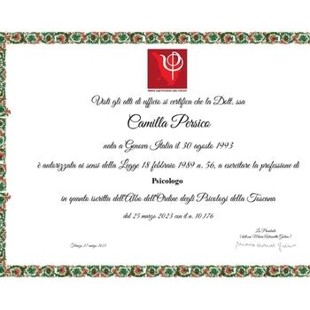 Mi presento, sono la Dottoressa Camilla Persico. Ricevo a Reggio Emilia e online. La durata effettiva della seduta è di 50 minuti; viene indicata di 60 per includere il tempo dedicato alle procedure di accoglienza e congedo. Durante il percorso l'obiettivo è accompagnarti in un processo di auto-esplorazione a partire dal motivo che ti ha portato qui, attraverso un approccio empatico e non giudicante. Fin dal primo incontro lavoreremo insieme per individuare strategie e strumenti utili a migliorare il tuo benessere anche nel breve termine. Il lavoro terapeutico proseguirà poi con la definizione di obiettivi chiari e concreti, favorendo una maggiore consapevolezza dei vissuti, dei sintomi e delle difficoltà che stai attraversando, con l'intento di comprenderne le radici più profonde. L'intervento si concentra su ciò di cui hai bisogno nel momento presente, mantenendo uno sguardo attento anche alle cause della sintomatologia. Potranno essere proposte indicazioni pratiche o piccoli compiti a casa, perché il percorso non si esaurisce nei 50 minuti di colloquio ma continua nella quotidianità, sostenendo un processo di crescita personale e di cambiamento stabile. Se senti che questo spazio può fare per te, puoi inviarmi una richiesta: sarò felice di ricontattarti per capire insieme da dove iniziare. Ciao, Camilla LGBTQIA Friendly