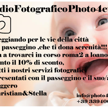 Siamo specializzati da oltre 25 anni a lavorare a stretto contatto con il pubblico !siamo abituati al dialogo e comprendere le esigenze dei nostri clienti in cui l emozione dei nostri scatti e il nostro marchio ,lavoriamo con passione senza guradare il tempo in quanto crediamo ancora che la persona ,la famiglia i bimbi siano al primo posto ,questo fa il fotografo come lo intediamo noi Chrsitan e Stella photo4ever