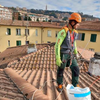 Siamo specializzati per lavori su fune per le manutenzioni in edilizia di tetti, grondaie, pannelli solari, canne fumarie, impermeabilizzazioni, e per la cura delle piante di alto fusto: potature, abbattimenti, interventi rapidi, spese ridotte, e in totale sicurezza.