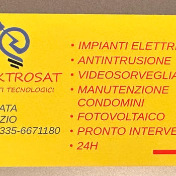 Elektrosat è un’azienda leader a Torino nel settore dei sistemi fotovoltaici e degli impianti elettrici. Specializzati nella progettazione e installazione, ci impegniamo a fornire soluzioni energetiche sostenibili e innovative per privati e aziende. Elektrosat offre soluzioni innovative per impianti elettrici e tecnologici: impianti elettrici, satellitari TV, antintrusione, videosorveglianza, telecamere, fotovoltaici, dati, reti informatiche e wifi. Pronto intervento garantito. Affidabilità e professionalità per ogni esigenza. Scegli Elektrosat per un futuro tecnologico e sicuro.