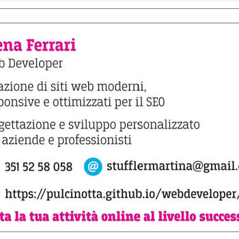 Cerchi un web developer che unisca creatività e precisione tecnica? Sono specializzato nella creazione di siti web su misura, ottimizzati per la velocità e l'user experience. Grazie alla mia esperienza in diversi settori, posso trasformare la tua visione in realtà digitale, distinguendoti dalla concorrenza. Affidabilità, attenzione ai dettagli e passione per l'innovazione sono le caratteristiche che mi contraddistinguono. Scopri come posso far crescere il tuo business online!