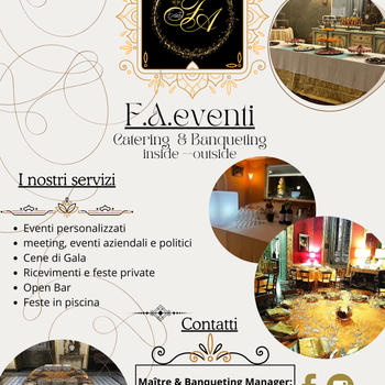 Servizi Catering e Banqueting inside e outside, eventi personalizzati, meeting e aziendali, politici, cene di Gala, cerimonie, feste a bordo piscina, Open Bar. Il nostro punto di forza è l' eleganza! Cucina:"Home made experience"