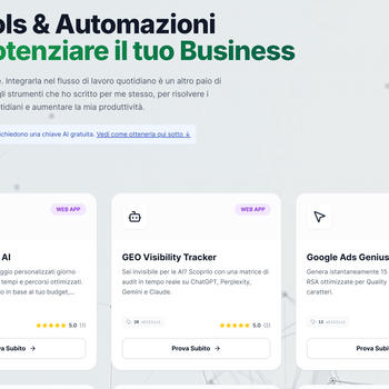 Trasformo processi di marketing e operativi in tool e automazioni AI che riducono lavoro manuale e rendono i risultati misurabili. Esempio: dashboard che unisce GA4 e Ads e invia report automatici.