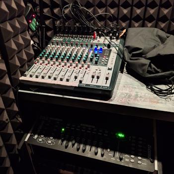 La sala prove è fornita di impianto audio mixer batteria aste e tutto quello che serve per le vostre prove con band