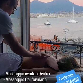Mi chiamo Federico, 41 anni e sono un Massaggiatore e Personal Trainer professionista di Napoli. Eseguo diversi tipi di massaggi: svedese (relax), californiano (olistico emozionale), linfodrenante, anticellulite, rimodellante, decontratturante, ayurvedico, sportivo, di coppia, etc. I trattamenti e/o gli allenamenti possono essere eseguiti presso il tuo domicilio oppure presso il mio centro al corso Vittorio Emanuele a Napoli (Parco del Pino) godendo di una meravigliosa vista panoramica sull'intero golfo di Napoli.