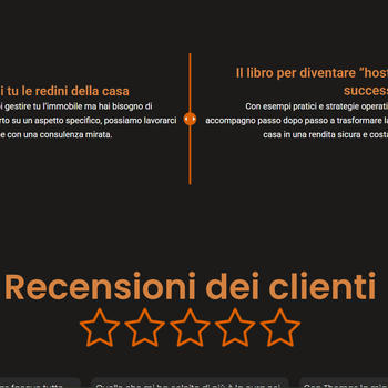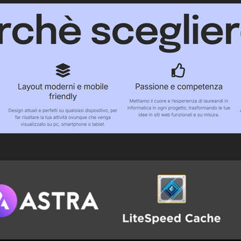 Offro siti web professionali, curati in ogni minimo dettaglio, belli da vedere e ben ottimizzati in modo da piazzarti al top delle ricerche nel minor tempo possibile. Offro la possibilità di integrare ogni tipo di plugin per prenotazioni, richieste eccetera e anche sistemi di intelligenza artificiale. Tutto questo a un prezzo imbattibile, un quarto rispetto a ciò che viene mediamente chiesto in italia.