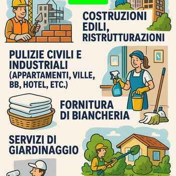 ImpresaMultiservizi.com , l'insieme di servizi utili al privato e alle aziende in Sardegna. Contattaci per un preventivo personalizzato. Semplici, veloci e competenti La nostra azienda ha sede ad Olbia ed opera in tutta la Sardegna. Si occupa di gestione di patrimoni immobiliari e acquisizione/prestazione di servizi tecnici per l’edilizia (consulenza attività tecnico/professionale, nel settore dei servizi tecnici per le imprese immobiliari ed edilizie). Ci occupiamo anche di trasporti e traslochi tramite vettori convenzionati e autorizzati in tutta la Sardegna, con personale specializzato ed attrezzato. La nostra Azienda dispone di personale anche per pulizie per privati, B&B, Hotel, camere, e si occupa di assistenza ai clienti per check-in e check-out. La garanzia, l'affidabilità e la capacità di fornire soluzioni mirate sono i principali valori che animano la nostra attività imprenditoriale. La nostra azienda è anche leader nella pulitura di qualsiasi superficie mediante l'utilizzo di tecnologie di alta qualità per la pulitura, il trattamento e la conservazione di superfici architettoniche e industriali. Inoltre siamo organizzati e attrezzati per i seguenti servizi: - Manutenzione Giardini e sfalci verdi; - Trasporto materiali di ingombro e Traslochi; - Pulizie civili e industriali (appartamenti, Hotel, B&b, privati, etc.); - Pronto intervento guasti elettrici e idraulici; - Sgombero cantine e ritiro elettrodomestici dismessi; - Ritiro sacchi vegetazione sterpaglie secche, sfalci verdi e potature; - Montaggio e/o smontaggio arredamento; - Costruzioni edili - Ristrutturazioni edili - Imbiancature interne PREVENTIVI GRATUITI CHIAMACI SUBITO