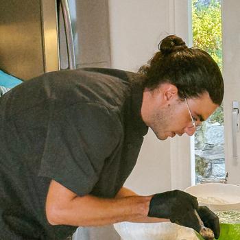 Sono Chef Gio, artigiano della pasta fresca e del pane fatto a mano. Amo lavorare ingredienti vivi, autentici, che conosco da vicino: raccolgo personalmente erbe spontanee e funghi selvatici, seguendo i ritmi della natura e del territorio. La mia cucina nasce dall’incontro tra stagionalità, tradizione e creatività, e si modella sulle esigenze di chi si siede a tavola. Ogni piatto racconta una storia diversa, costruita insieme al cliente. Sono anche un pescatore appassionato: per questo il mio lavoro inizia molto prima dei fornelli, dalla scelta del prodotto migliore. La qualità è la mia regola.