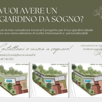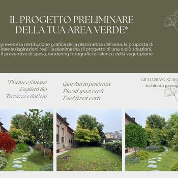 Ciao! Sono Giulia, Architetto paesaggista e agronoma. Offro consulenza nella progettazione di giardini e terrazzi. Eseguo velocemente Rendering e inserimenti fotografici. Do anche consigli su specie vegetali, pavimentazioni e arredo. Se anche tu devi sistemare un'area verde, ma non sai come fare, chiedi a me un preventivo: in poco tempo ti mando una o più soluzioni preliminari. Ti faccio risparmiare ora e in futuro con scelte a bassa manutenzione con risultati verdi molto piacevoli!