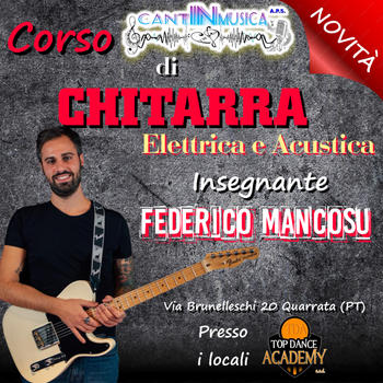 La nostra associazione CantINmusica propone corsi di musica per bambini, ragazzi e adulti a partire da qualsiasi livello, CORSI DI CHITARRA CLASSICA, ELETTRICA E ACUSTICA, CORSI DI BATTERIA, CORSI DI TEATRO PER BAMBINI- RAGAZZI E ADULTI. Venite a trovarci in via Brunelleschi 20 a Quarrata!