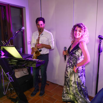 Duo di musicisti per matrimoni, feste ed eventi Raoul cantante pianista e sassofonista Jessica cantante Musica per la chiesa ricevimento e intrattenimento per la festa con musica e giochi