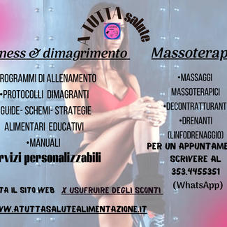 Offro programmi, percorsi personalizzati dopo un' accurata anamnesi. Offro la possibilità di leggere un'anteprima dei manuali "A TUTTA salute" "BASTA DIETE impara a mangiare" & "L'ABC del FITNESS" concetti base.