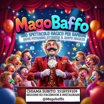 Preparati a vivere la magia come mai prima d'ora! Hai mai visto una bacchetta magica far comparire sorrisi più grandi? Con MagoBaffo, lo spettacolo è garantito! il baffo magico trasformerà ogni festa in un'esperienza indimenticabile! Non perdere l'occasione di stupire i tuoi amici e bambini con trucchi mozzafiato e un po' di sana magia! Contattami subito per prenotare il tuo show e preparati a ridere, stupirti e magicamente divertirti!