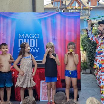 Buongiorno, Le illustro il mio divertentissimo spettacolo di magia comica per bambini e adulti unitamente ad un animazione con bolle di sapone giganti a ritmo di musica (che si terrà in un secondo momento). Il programma che Le scrivo è super collaudato e soprattutto avrete uno show di magia più bolle di sapone molto coinvolgente e divertente. Sono più di 15 anni che vesto i panni dello strampalato MAGO Dudi, che attraverso un repertorio innovativo di magie e divertenti gag, incanterà e divertirà i piccoli invitati e gli adulti che li accompagnano, così non si annoia nessuno. Nelle mio spettacolo di magia "Mr. Dudi e gli animaghi", nessuna formula magica può funzionare senza il cuore e la passione che metto in ogni istante dell'intrattenimento e soprattutto senza l'aiuto dei bambini che diventeranno dei piccoli maghi assieme a me. Come si usa dire, giocare non è un gioco, è molto di più! Insieme alle tante risate, ci sarà anche l' apparizione finale di due pesciolini rossi che verranno regalati al festeggiato e apparizione del bellissimo coniglio bianco di nome Biglia. Nel prezzo è compreso anche il servizio di bimbo nella bolla! Se dovesse esserci bel tempo e la possibilità di uscire,dopo la torta, ci scateneremo a tempo di musica con bolle di sapone giganti. Garantisco un'animazione divertente e coinvolgente per tutti. Soddisfatti o rimborsati. La durata di tutta l'animazione è superiore alle 2 ore. Legga cortesemente le mie recensioni direttamente dal mio profilo sul portale prontopro.