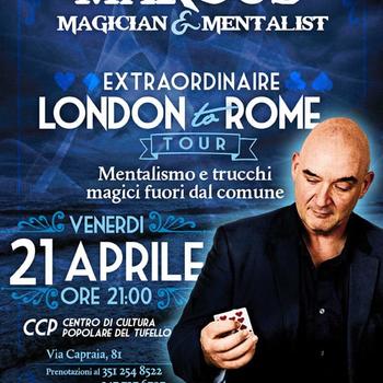 Ritornato negli ultimi mesi a Roma, dopo una permanenza a Londra durata 30 anni. Membro del famoso Magic Circle di Londra dal 1998, Marco e' sempre stato interessato nella magia e nel gioco di mano . Esperto nella Micromagia e nel mentalismo , Marco ( in arte Marcus ) si esibisce spesso in teatri e spettacoli privati . Parla benissimo l'inglese ( seconda lingua ) cosicche' esibirsi in inglese non presenta nessun problema . Organizza periodicamente corsi, laboratori e lezioni private per adolescenti ed adulti . Marco vende trucchi originalissimi di magia che idea e produce personalmente .