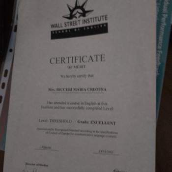 Mi chiamo Ricceri Maria Cristina sono insegnante d'inglese e francese presso l'azienda di Pronto Pro. Attualmente svolgo la mia attivita' impartendo lezioni d'inglese e francese.La caratteristica che mi differenzia dalla concorrenza e' il continuo aggiornamento del mio lavoro. Attualmente sto studiando Inglese perche' ho intenzione di ottenere la certificazione Ielts
