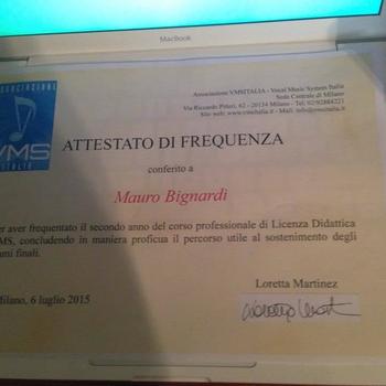 Terminato, presso l'associazione musicale VMS ITALIA di Loretta Martinez (Vocal Coach di “Amici” di Maria De Filippi), Master in “Didattica in Canto Moderno”;