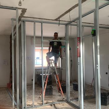 Lavoro come muratore e faccio piastrelle, cartone, gesso, imbiancatura, intonaco e tinko. Tutto ciò che deve essere fatto negli appartamenti è fatto, ecc.