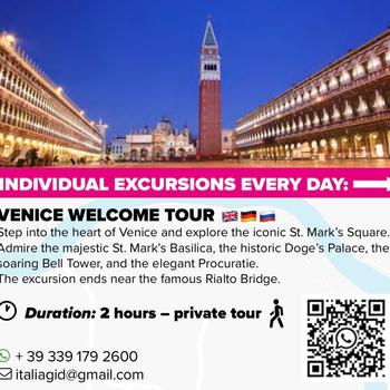 Scopri il vero Veneto con chi lo conosce davvero! Sono un’accompagnatrice turistica autorizzata dal 2010 e ti accompagnerò alla scoperta dei luoghi più belli e autentici: Venezia, Murano, Burano, Padova, Treviso e molti altri angoli speciali. Non sarà una semplice visita. Sarà una giornata vissuta come un vero locale: tra storia, piccoli segreti della città e luoghi che spesso i turisti non scoprono. Sarò felice di aiutarti anche a organizzare la tua giornata perfetta: dalla passeggiata tra calli e canali fino alla degustazione dei prodotti tipici del territorio. Tu devi solo goderti l’esperienza.