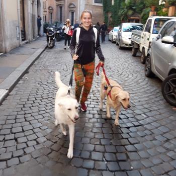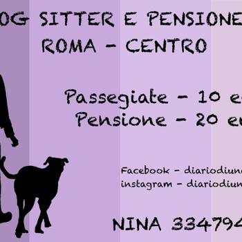 Ciao, per chi non mi consoce io sono Nina, (diario di una dogsitter su Fb scrivetemi la, qua non riesco a rispondere.) sono una ragazza di 24 anni, cha ha fin da piccola amato i cani. Dopo aver rotto l'anima ai mie genitori per anni, quando avevo 10 anni, é arrivato Lillo, un meticcio di taglia grande, salvato dalla strada. Oggi ha 14 anni, ed è il cane piu paziene e buono che io conosca. Con lui ho frequentato un corso di educazione base. Ma torniamo un attimo a me, lavoro come dog sitter da circa 4 anni. Ho portato cani di qualsiasi genere e taglia. Mi muovo in zona centro Trastevere monteverde , ma in motorino mi posso spostare in altre zone. Frequento più volte al giorno il parco e ho clienti abituali da più di 3 anni. Inoltre sto studiando per diventare addestratrice cinofila, e spero diventarlo a tutti gli effetti il prima possibile. Amo il mio lavoro e per loro sono pronta a rotolarmi nel fango, a mettermi in quattro zampe a farmi sbavare e amare tutta. Inoltre sto molto attenta alle esigenze dei proprietari e mando foto e video giornalmente ( anche troppo spesso :P ) per aggiornavvi e far in mdo che potete stare tranquilli. Il dello stato del cane.ro con tutto l'amore che posso.