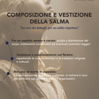 In un momento di dolore, siamo al tuo fianco con umanità, discrezione e professionalità. Ti offriamo un servizio completo: dall’allestimento curato al disbrigo pratiche, personale esperto e prezzi trasparenti. Perché ogni ultimo saluto debba essere un ricordo di dignità.