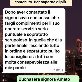 Buongiorno a tutti spero che mi chiamate se avete bisogno di me per il mio lavoro che io svolgo da 15 anni. Saluti a presto