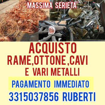 PAGAMENTO IMMEDIATO ACQUISTO RAME OTTONE E VARI METALLI SERIO RITIRO A CASA PAGAMENTO IN CONTANTI Ruberti