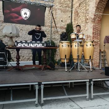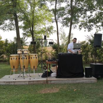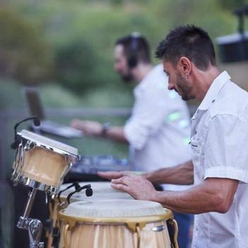 Uniamo le percussioni alla musica del dj offrendo un'esperienza visiva che unisce il dj set all'utilizzo di strumentazioni realmente suonate live. Questo crea una energia differente ma fa diventare il dj set un vero live come quello di una band.